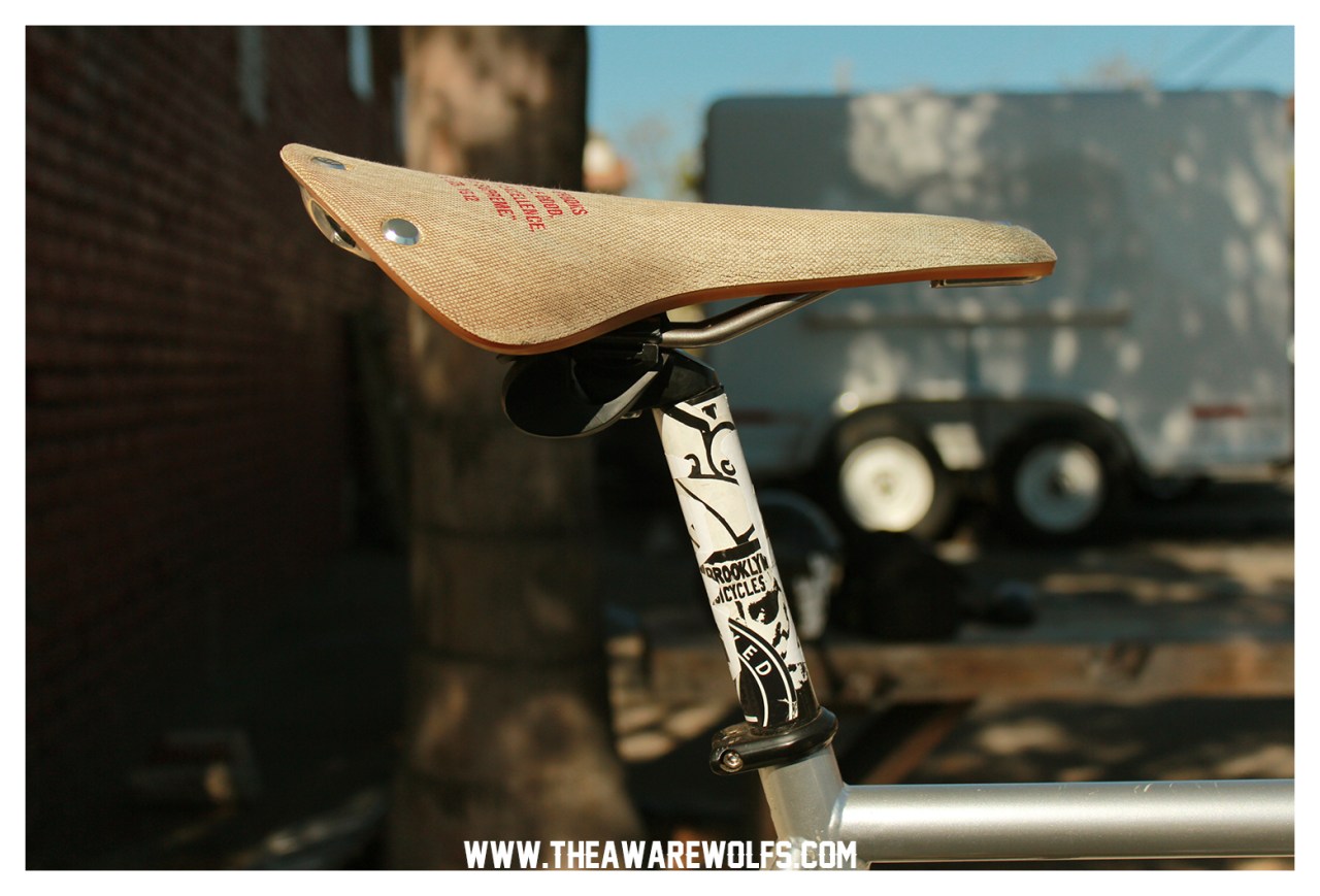 I’m no ‘saddle’ guru. The ‘seats’ I grew up on were big bulky BMX seats or plastic pivotals. I wear dress shoes often so I understand how Brooks saddles wear in get softer over time. I get it. I just have never had the opportunity to get my paws on a NICE saddle. Kinda going further with all that stuff too is, I’ve been vegetarian for 6+ years so I kinda like the fact that my bike has zero leather on it.